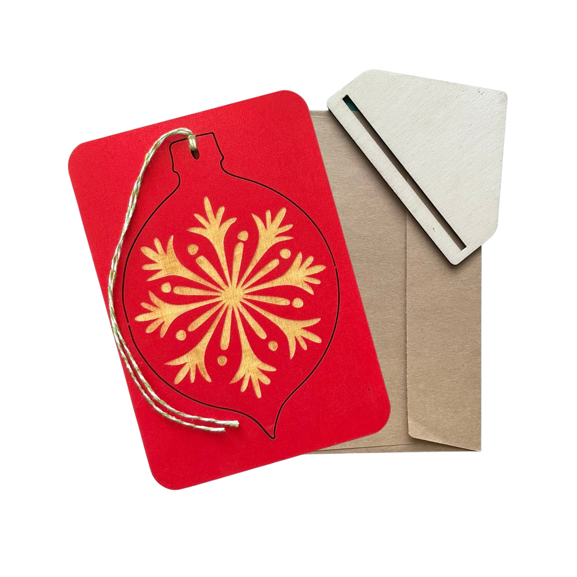 This wooden card has a Christmas Bauble that you can pop out and either hang on your tree or use as a gift tag. Write a personal message on the back to make it extra special.